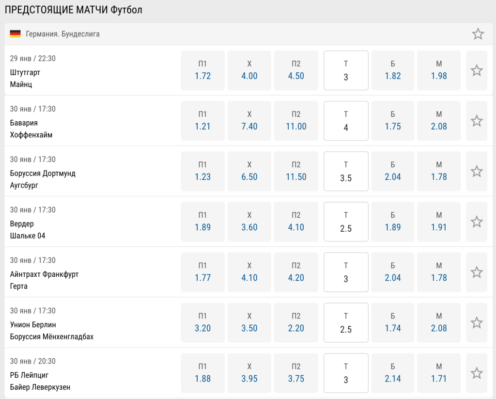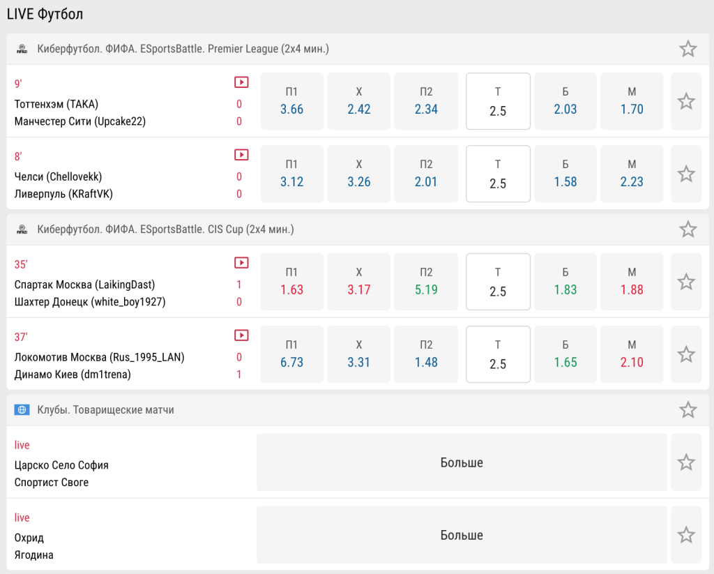 A escolha aqui é bastante ampla. Por exemplo, um evento de futebol popular pode ter mais de 300 itens. Existem diferentes opções de apostas: total, número de gols, escanteios, faltas, etc.