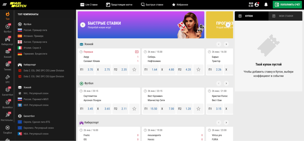 BC Parimatch é uma das empresas mais famosas da Rússia. Iniciou suas atividades em 2009. A casa de apostas possui altos índices de fidelização de clientes, muitos trajes e parceiros famosos.